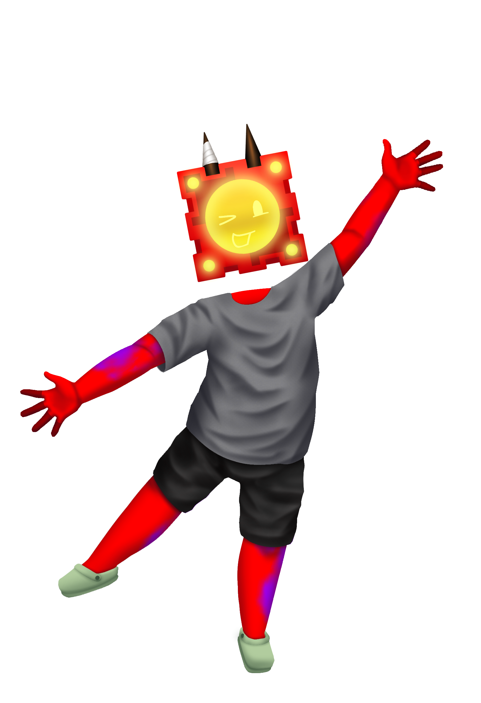 The powers I gave made him turn into flames and can also fly or float. Since he's in flames, he can also shape-shift into whatever shape he wanted like: blades, blocks, etc. But mostly he likes to be in this state which is fun to play with because he likes to be small and funny.